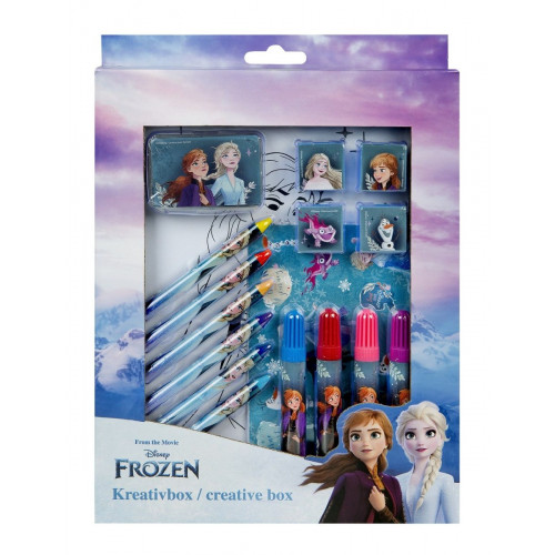 Caracteristici: Set Creativ Frozen perfect pentru fanii filmului Disney Frozen 2  Setul contine tot ce ai nevoie pentru proiectul tau creativ Setul contine: 4 stampile 4 markere  10 coli A5  1 coala cu autocolante 10 x 10 cm  6 creioane colorate