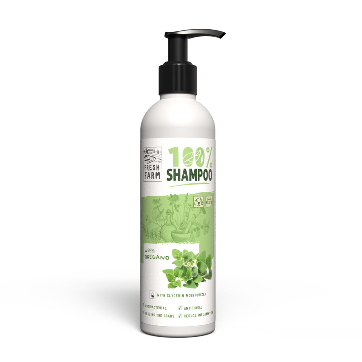 FRESH FARM Oregano, XS-XL, sampon caini, antibacterian / antifungic, flacon, 250ml
