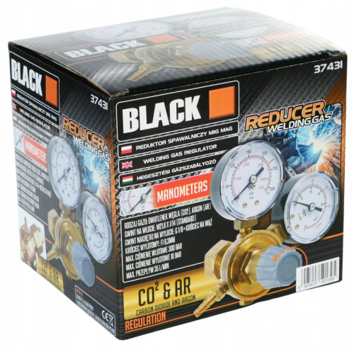 Reductor de gaz universal de inalta calitate de la BLACK este utilizat pentru a reduce presiunea gazelor preluate din butelie la presiunea de lucru necesara. Permite mentinerea presiunii cat mai constanta posibil , indiferent de modificarile presiunii de intrare. Un reductor cu o singura treapta utilizat cel mai des la sudarea cu masini de sudura semiautomate (MIG) sau TIG , care necesita ecranare cu gaz. Este echipat cu doua manometre - primul indica presiunea din cilindru, al doilea indica debitul de gaz pe minut. Reductorul este de asemenea echipat cu o supapa de siguranta prin care se elibereaza excesul de gaz atunci cand presiunea de iesire depaseste limita admisa . DATE TEHNICE Tip gaz: CO2, Ar Filet de intrare: W21.8x1/14 Filet piulita la iesire : G 1/8 Conector de iesire: o6.3mm Presiune de intrare: 300 bar Presiune de iesire: 0,5 - 10 bar Debit: 35l/min
