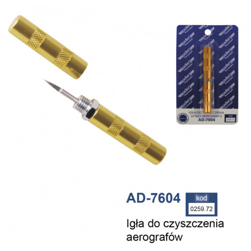 Ac pentru curatarea aerografului sau pistol de vopsit MA0259.72 AD-7604 este un ac pentru curatarea aerului si a pistolelor pulverizate. Si mai ales duzele. Daca uitati de curatarea corespunzatoare a echipamentului imediat dupa munca si vopseaua reuseste sa se usuce, este foarte dificil sa o indepartati. Acul poate veni la salvare. cu toate acestea, ar trebui sa-l utilizati foarte atent, deoarece duzele sunt de obicei foarte delicate si usor deteriorate. Date tehnice: Nume: AD-7604 Cod: 0259.72