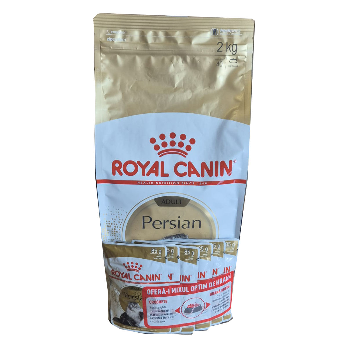 PROMO ROYAL CANIN Persian Adult, hrana uscata pisici, 2kg + 6 buc x 85g plic GRATUIT