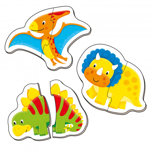 Puzzle bebelusi Galt, Dinosauri, 12 piese, 6 dinosauri Cele 6 puzzle-uri sunt compuse din cate 2 piese mari care incurajeaza abilitatile de indemanare si asociere inca de la o varsta frageda. Dimensiune puzzle: 12.5 x 15 cm Varsta recomandata: 18 luni+ Atentie! Nu lasati ambalajele jucariilor/produselor la indemana copiilor. Indepartati orice ambalaj al jucariei/produsului inainte de a da jucaria/produsul copilului. Va rugam sa supravegheati copilul in timp ce se joaca/foloseste acest produs. Pastrati instructiunile si etichetele pentru referinte viitoare. Pastrati jucaria/produsul departe de foc, feriti jucaria/produsul de temperaturi ridicate si umiditate.