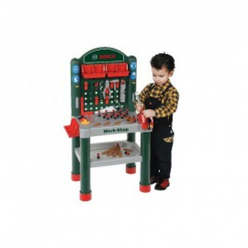 Setul face parte din seria premium de bancuri de lucru produse de Klein. Este realizat in Germania din plastic de inalta calitate cu detalii extrem de realiste si vine complet utilat. Desi este gandit pentru joaca celor mici, acest banc de lucru ii va face gelosi chiar si pe tatici.Setul contine un total de 75 de piese printre care:- menghina - fierastrau - surubelnita - cheie franceza - subler - ciocan - suruburi - pila - multe alte accesoriiDimensiuni: 58,5 x 16 x 72,5 cm.