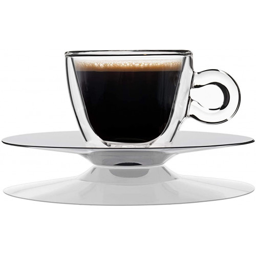 LUIGI BORMIOLI DRINK & DESIGN Ceasca termica cu pereti dubli si farfurioara inox 165ml D8,2xh7,3cm