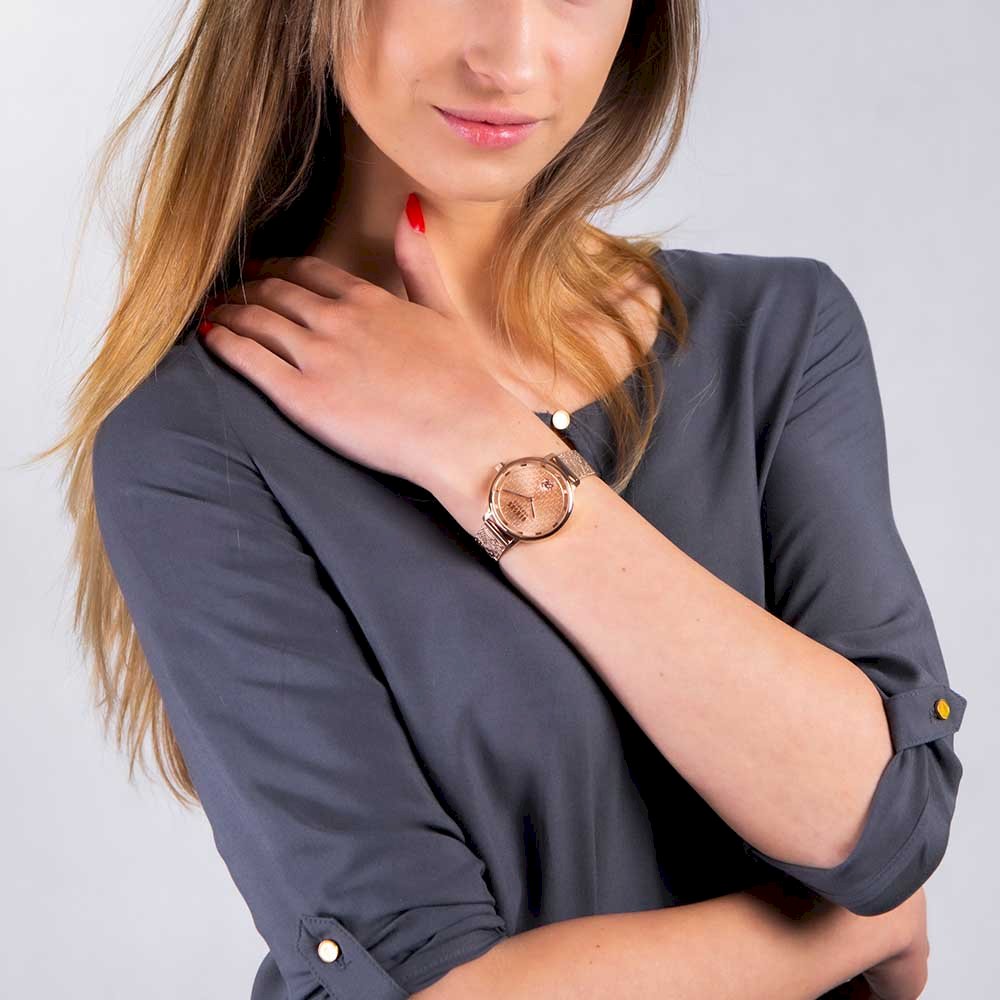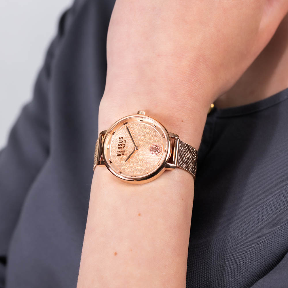 Ceasul de mana Versace pentru femei are mecanism quartz si este potrivit stilului casual. Carcasa este din inox si are diametrul de 36 mm iar cureaua este confectionata din inox. Cadranul are display analog si geamul foarte rezistent realizat din cristal mineral cu etanseitate (rezistenta la apa) de 3 atm.