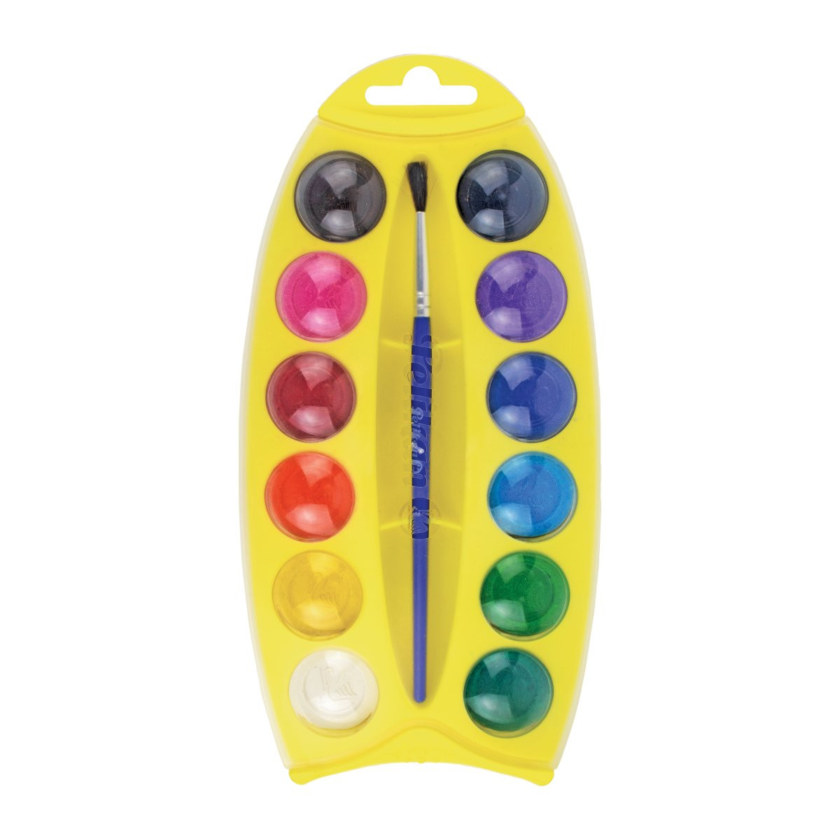 Acuarele Junior tip pastila, 12 pastile de culoare, inclusiv alb, pensula inclusa, Pelikan Bine ati venit in lumea minunata a picturii cu acuarele Pelikan ! Pictura in acuarela este perfecta pentru toti! Tehnica aceasta permite oricui sa isi exprime creativitatea si sa creeze picturi spectaculoase. Pictura cu acuarele poate fi o activitate minunata pentru copii, ajutandu-i sa-si dezvolte abilitatile artistice, sa-si cultive nu doar imaginatia dar si rabdarea, atentia la detalii si motricitatea fina. Cu ajutorul acuarelelor si a pensulelor de inalta calitate, copiii pot crea picturi uimitoare intr-un mod distractiv si relaxant. Orice e posibil, in lumea Pelikan! Beneficii • Pigmenti selectionati, de calitate, cu granulatie fina • Nuante pure, transparente, cu opacitate ridicata • Culorile sunt usor de dizolvat si aplicat • Rezistenta ridicata la lumina Aplicatii Pictura creativa in diferite tehnici pe hartie speciala pentru pictura in acuarela: • Glazura (culoare pe hartie uscata) • Tehnica „umed pe umed” (vopsea pe hartie umeda) • Granulare (vopsea groasa, putina apa pe hartie aspra, uscata)