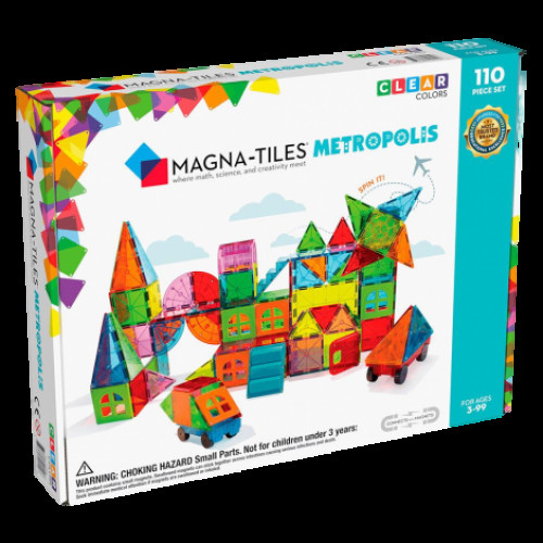 Magna - Tiles Metropolis set magnetic 110 piese Este timpul sa iti completezi colectia Magna-Tiles cu culori si mai vibrante si luminoase si placi magnetice mobile. Noua aparitie in colectia Magna-Tiles, mult asteptatul set Metropolis vine cu culori noi indraznete si luminoase si placi in miscare cu care copiii pot crea orice structura sau constructie isi imagineaza! De la o metropola inalta aglomerata, pana la o ferma alimentata de o moara de vant sau o colonie infloritoare in spatiu, nu exista limite in imaginatia sau creativitatea copiilor cu acest fantastic set! Setul include 110 piese: 2 patrate mari, 56 de patrate mici, 12 triunghiuri echilaterale, 12 triunghiuri drepte, 10 triunghiuri isoscele, 2 sasiuri cu roti, 1 usa, 1 dreptunghi, 2 scari, 4 sferturi de cerc, 1 spinner, 6 ferestre, 1 arcada. Acest set inedit de placi magnetice, ce permite constructia libera, fara efort, va inspira imaginatia micutilor si ii vor ajuta sa devina creativiFiecare piesa este translucida si are magneti in interior, care permit conectarea cu celelalte forme in orice pozitie. Este un secret capacitatea unica de a se atrage reciproc, chiar si atunci cand sunt rotiti invers. Magnetii de inalta calitate sunt securizati in siguranta in fiecare forma. Magna-Tiles Metropolis ofera posibilitatea de a explora ideile si lectiile de matematica si geometrie intr-un mod distractiv si interesant. Piesele au dimensiuni potivite pentru copii, pentru a putea fi folosite cu usurinta.[img-272798-left-thickbox_default] Magna-Tiles mentine active timp indelungat interesul si atentia copiilor si constituie un excelent instrument de dezvoltare a abilitatilor spatiale, tactile, motorii fine, de constructie si modelare, matematice si geometrice. Dezvolta gandirea logica si critica, rationamentul matematic, si stiintific, abilitatile de rezolvare a problemelor, rationamentul spatial, abilitatile tactile, motricitatea fina, coordonarea ochi-mana, dexteritatea, imaginatia si creativitatea. In plus, Magna-Tiles face ca invatarea sa fie distractiva, mareste timpul si capacitatea de concentrare a copiilor, mentinandu-le atentia ocupata cu ceva educational. Seturile Magna-Tiles nu numai ca sunt distractive, dar ajuta si la dezvoltarea abilitatilor STEM in timp ce copiii conecteaza, construiesc, numara, potrivesc si creeaza structuri magnetice. Toate seturile Magna-Tiles originale sunt compatibile intre ele. Magna-Tiles sunt folosite in scoli, gradinite, locuri de joaca, in centre pentru copii, in muzee pentru copii si in multe case din toata lumea. Parintii, educatorii si copiii de toate varstele iubesc Magna-Tiles! Seturile magnetice de constructie Magna-Tiles sunt sigure pentru copii, sunt realizate din material plastic ABS (Acrylonitrile butadiene styrene) de inalta calitate, nu contin BPA, ftalati, PVC, latex sau materiale toxice, respectand standardele internationale de calitate si siguranta CE, EN71, ASTM si CPSIA. Varsta recomandata: 3+ ani Dimensiuni cutie: 54 x 28 x 9 cm Atentie! Nerecomandat copiilor mai mici de 3 ani. Produsul poate contine piese mici care se pot inghiti sau inhala, existand pericolul de sufocare. Nu lasati ambalajele produselor la indemana copiilor, indepartati toate ambalajele inainte de a oferi jucaria copilului. Jucaria contine magneti sau componente magnetice. Magnetii care se lipesc unul de celalalt sau se ataseaza de un obiect metalic in interiorul corpului uman pot provoca accidente grave. Cereti imediat asistenta medicala in cazul in care magnetii sunt inghititi sau inhalati.