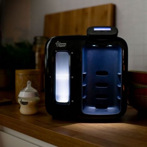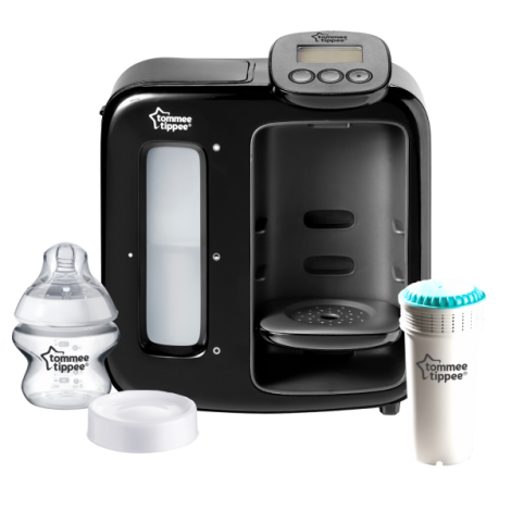 Tommee Tippee Closer to Nature Perfect Prep Machine cu display - aparat pentru pregatirea laptelui praf.Aparatul Perfect Prep cu display de la Tommee Tippee te ajuta sa pregatesti formula de lapte pentru micutul tau. Poti pregati un biberon cu formula de lapte la temperatura potrivita, in doar doua minute. Astfel, il poti hrani fara stres la orice ora din zi sau din noapte. Filtrul inclus in pachet poate fi utilizat pana la 3 luni*. Te ajuta sa pregatesti in doar 2 minute biberonul cu formula de lapte la temperatura optima Silentios - Poti pregati formula de lapte in liniste, datorita volumului reglabil Usor de folosit si noaptea – Lumina discreta ajuta la pregatirea biberoanelor cu lapte in timpul noptii Afisajul digital este simplu si usor de utilizat Aparatul Tommee Tippee Perfect Prep™ cu display este compatibil cu majoritatea marcilor de biberoane si formule de lapte*daca se prepara 6 biberoane x 260 ml pe zi.Somnul parintilor poate fi influentat de trezirile nocturne, necesare hranirii bebelusului. Bebelusilor infometati nu le place sa astepte prea mult sa fie hraniti si isi exprima sentimentele prin singurul mod cunoscut lor, plansul. Trezirile din timpul noptii, cand incerci sa linistesti copilul si sa pregatesti si biberonul cu formula de lapte, pot provoca adevarate teste de stres.Aparatul Perfect Prep cu display face ca hranirea cu biberonul sa fie mult mai usoara, atat ziua cat si noaptea.Te ajuta sa pregatesti biberonul cu formula de lapte in doua minute, fiind conceput pentru a fi utilizat cu usurinta si pe timpul noptii. Este de zece ori mai rapid in comparatie cu fierberea si racirea apei necesare prepararii formulei de lapte.Cand copilul tau plange, ai nevoie de rapiditate in prepararea biberonului cu lapte [img-270583-left-thickbox_default] Cu aparatul Perfect Prep™ cu display, prepararea biberonului cu formula de lapte este mult mai rapida in comparatie cu prepararea clasica.Filtru anti-bacterian Aparatul Perfect Prep™ este conceput pentru a fi utilizat cu apa direct de la robinet. Membrana unica a filtrului, indeparteaza bacteriile si impuritatile care pot fi gasite in apa, asigurand apa curata pentru prepararea formulei de lapte. Acest produs este destinat numai filtrarii apei potabile. Nu utilizati apa de calitate necunoscuta cu acest produs.Lapte la temperatura corpului Primul jet fierbinte elibereaza apa la 70°C pentru a elimina bacteriile care pot fi prezente in formula de lapte. De asemenea, ajuta la dizolvarea rapida si usoara a formulei de lapte. Dupa primul jet fierbinte, apa rece este distribuita pentru a aduce laptele la temperatura corpului.Cel mai bun prieten pentru prepararea biberonului cu lapte in timpul noptii [img-270582-left-thickbox_default] Luminile discrete ale rezervolului va arata nivelul apei, pentru a-l umple in timp util. [img-270581-left-thickbox_default] Volumul reglabil si luminarea suportului pentru biberoane, va ajuta sa pregatiti biberonul cu lapte pe intuneric!Dimensiuni ambalaj: (H) 33 cm x (W) 30.6 cm x (D) 21.6 cm Pachetul include: 1 x Aparat Perfect Prep™ cu display, 1 x filtru anti-bacterian, 1 x biberon 150 ml, 0m+, cu tetina cu flux lent, 1 x capac pentru biberon Tommee Tippee - face viata mai usoara mamelor din intreaga lume! Contraindicat copiilor mai mici de 3 ani. Jucaria/produsul poate contine piese mici care se pot inghiti sau inhala existand pericolul de sufocare sau nu este potrivita copiilor mai mici de 3 ani. Nu lasati ambalajele jucariilor/produselor la indemana copiilor. Indepartati orice ambalaj al jucariei/produsului inainte de a da jucaria/produsul copilului. Va rugam sa supravegheati copilul in timp ce se joaca/foloseste acest produs. Pastrati instructiunile si etichetele pentru referinte viitoare. Pastrati jucaria/produsul departe de foc; feriti jucaria/produsul de temperaturi ridicate si umiditate.