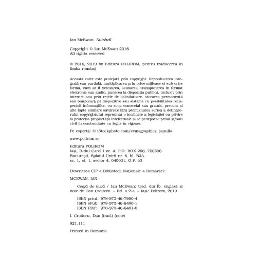 Coaja de nuca - Ian McEwan, editia 2019