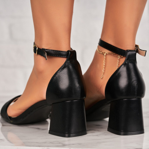 Sandale dama cu Toc Negre din Piele Ecologica Bellamy