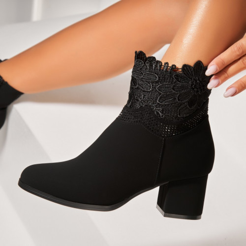 Botine dama Imblanite Negre din Piele Ecologica Intoarsa Karsyn