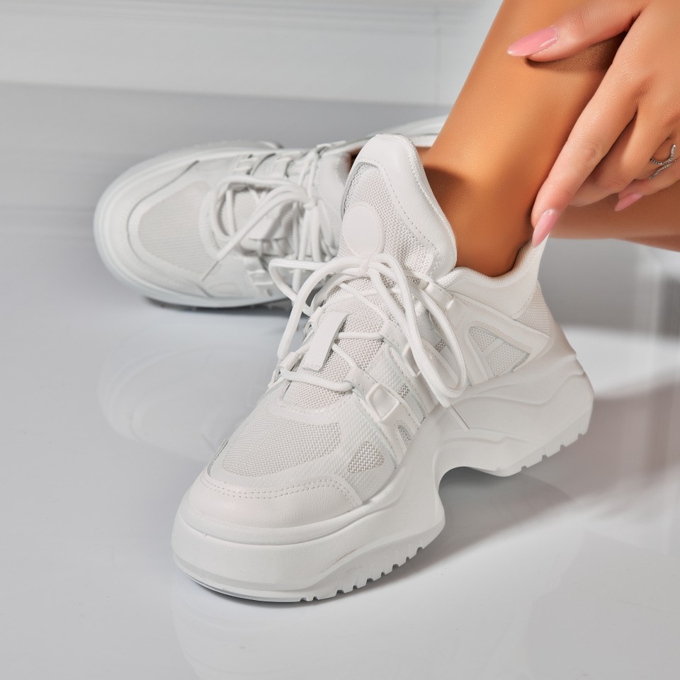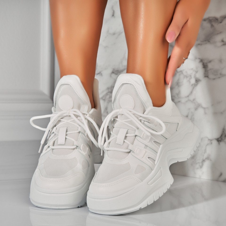 Adidasi Dama Albi din Piele Ecologica Saryn