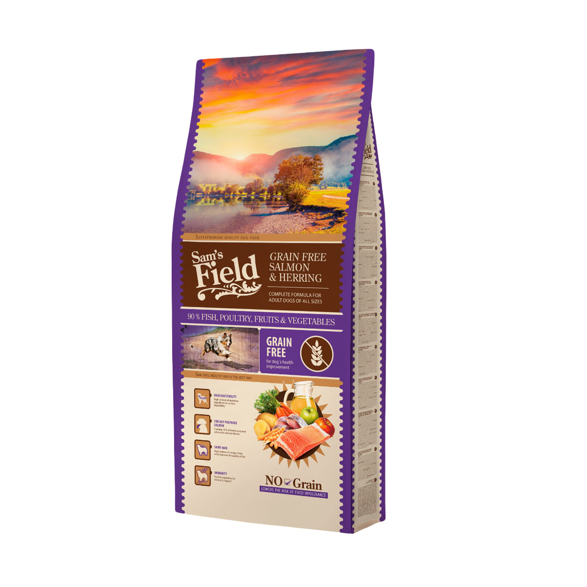 SAM'S FIELD, XS-XL, Somon si Hering, hrana uscata fara cereale caini, 13kg