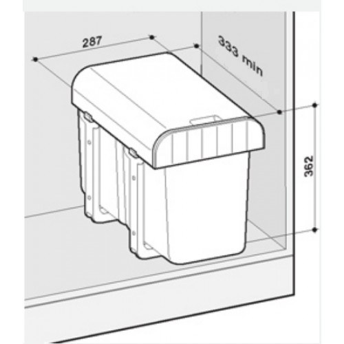 Cosul de gunoi pentru colectare selectiva cu 2 compartimente mobile este prevazut cu ghidaje din otel galvanizat care pot suporta o greutate de pana la 30 kg. Extragerea se face pe glisiere cu bile cu extragere totala. Cosul este foarte rezistent fiind confectionat din polipropilena cu fibra de sticla. Compartimentele mobile prevazute cu manere si capacul cosului sunt demontabile si se pot curata foarte usor chiar si in masina de spalat vase. Cosul de gunoi poate fi montat in corp cu adancime de minim 353 mm, latime de minim 307 mm si inaltime de minim 382 mm.