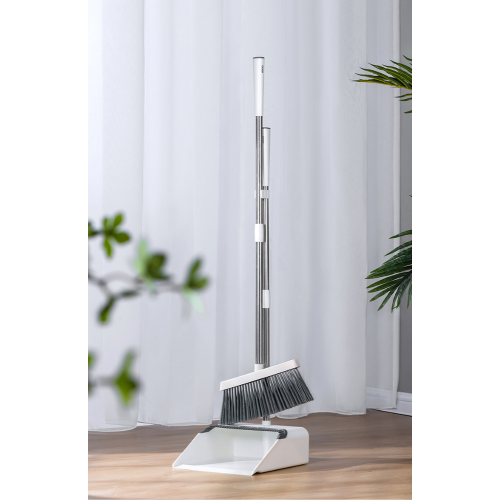 Descriere Set matura si faras cu coada, Lungime ajustabila, Plastic/Otel inoxidabil, alb. Peria contine trei randuri de peri pentru colectare rapida si eficienta a prafului Design inovator, in unghi de 45 grade care se potriveste perfect pentru curatarea tuturor tipurilor de colturi greu accesibile margine de cauciuc moale creeaza o etansare puternica intre suprafata si faras, colecteaza praful fara imprastiere; design compact va permite sa agatati matura de manerul farasului; manere reglabile, permit extinderea de pana la 95 cm a maturii si 88.5 cm a cozii farasului; economisiti spatiu : matura se poate fixa pe coada farasului in pozitie verticala si se poate depozita in orice colt ingust al camerei, in debara sau dulap pentru accesorii de curatenie; se poate utiliza atat la interior cat si la exterior; farasul are o deschizatura larga, si este prevazut cu zimti meniti sa curete matura de tot ceea ce se aduna si patrunde printre perii sai, fara a lasa zgarieturi pe pardoseala; . Materiale: Plastic si Otel inoxidabil