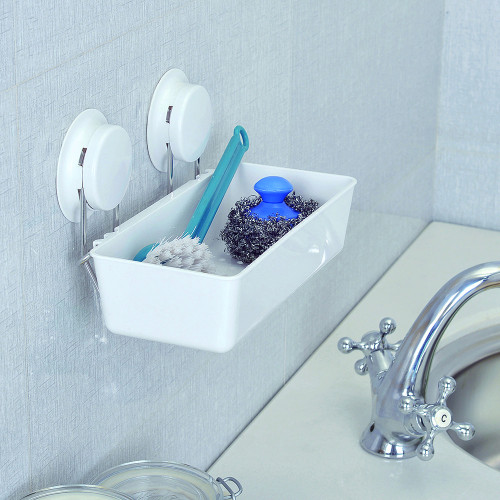 Etajera depozitare pentru baie sau bucatarie, cu ventuze HeavyLock performante