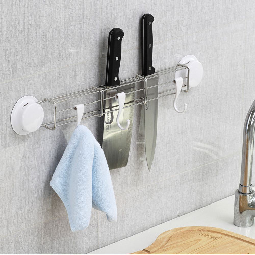 Set accesorii bucatarie House of Roger, 4 piese (suport cutite + suport tacamuri + suport prosop hartie + carlig dublu) cu ventuze HeavyLock