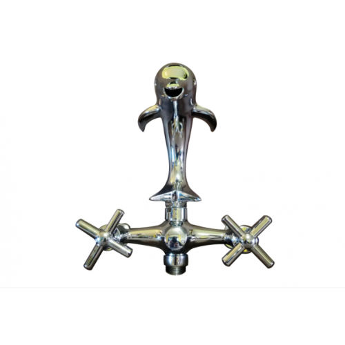 Bateria pentru cada "DELFIN" se poate monta pe perete cu ajutorul celor 2 piese excentrice plus ornamentele aferente bateriei. Este o baterie robusta, executata din metal masiv, cromat si rezistent, fiind prevazuta cu -un sistem de montaj. -furtun de dus flexibil. -para dus si instructiuni de montaj si folosire. Reglajul apei se realizeaza cu ajutorul celor doi robineti cu obertain cu pastila ceramica. Comutarea fluxului de apa, de la teava (gura delfinului) la para dus, se realizeaza prin intermediul valvei situata in partea frontala a bateriei. Teava este pivotanta, pentru a putea fi orientata in orice pozitie. .