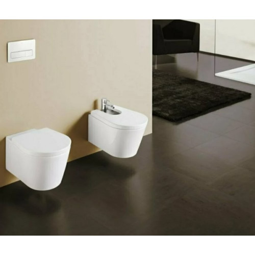 SET VAS WC GLAM forma: rotunjit, tip: incastrat, tip montaj: suspendat, culoare: alb, Caracteristici: Seria: GLAM Tara origine: Spania forma: rotunjit tehnologie: rimless,Tip: incastrat culoare: alb tip montaj: suspendat