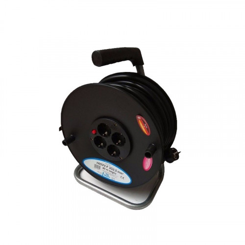 Lungime cablu: 25m Numar fire: 3 Sectiune cablu: 2.5mm Putere cu cablu derulat: 3500W Putere cu cablu bobinat: 1000W 4 priza schuko 230V/16A – IP20 Buton protectie termica