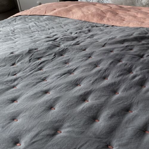 Cuvertura de pat matlasata Homelevel, 200 x 220 cm, Gri/Roz, Poliester, 54993.22