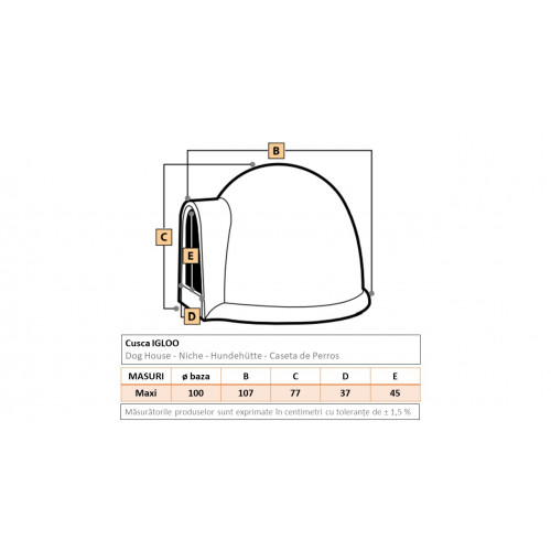 Cusca tip Igloo tortora 100X107X77h cm usa 37x45h cm 100% reciclabila si netoxica 100% POLIETILENA Monolitic Rotomolding Impartirea cainilor dupa marime poate fi utila in diferite contexte, de exemplu atunci cand vine vorba de alegerea cainelui potrivit pentru familia ta sau pentru situatia ta de locuinta. In general, se pot distinge trei categorii de caini in functie de marimea lor: • Caini de talie mare: in aceasta categorie sunt incluse cainii care cantaresc mai mult de 25 kg si au o inaltime la greaban mai mare de 60 cm. Cateva exemple de rase de caini mari includ : • Labrador Retriever, Golden Retriever, Rottweiler si Ciobanesc German. Cainii de rasa mare sunt potriviti sa locuiasca intr-o casa cu o gradina mare si necesita multa activitate fizica zilnica. Made in Italy Calitatea materiilor prime utilizate garanteaza o rezistenta maxima la razele ultraviolete. Culoarea ramane neschimbata in timp. Peretii interiori rotunzi si netezi, fara fisuri sau porozitate, nu permit parazitilor sau insectelor sa se cuibareasca si reproduce. Sunt impermeabile, nu putrezesc, nu absorb mirosurile, nu acumuleaza caldura, nu transmit frig. Lavabil cu apa fierbinte, rezistenta la acizi si la cei mai puternici detergenti chimici. Materialele utilizate (polietilena liniara sau polipropilena) sunt garantat ADECVAT PENTRU ALIMENTE si, prin urmare, 100% NON-TOXIC. Sunt RECICLABILE. Custile rotazionale sunt echipate cu capace detasabile care faciliteaza curatarea. Toate canisele sunt proiectate pentru a asigura o ventilatie eficienta.