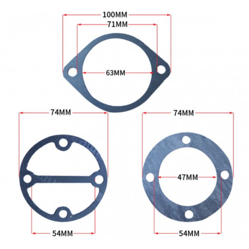Set garnituri cap compresor 47mm SPC107 Pentru alte dimensiuni sau model diferit va rugam contactati-ne! Se pot executa dupa grafica si dimensiunile date de client. Descriere Garnitura cap compresor de aer cu diametrul cilindrului de 47 mm Etansari dedicate compresoarelor intr-un aranjament in linie de cilindri. Fabricat din materiale de inalta calitate. Folosit la pompele de aer marca Barracuda. Ele sunt, de asemenea, utilizate in echipamentele marcilor concurente gasite pe piata noastra. Setul de reparatii este format din 3 garnituri. Chopperul se potriveste cu generatoare de curent (Honda, Barracuda, Kraftwelle, Nupower si altele), compactoare, motopom, etc.
