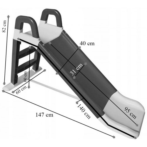 Toboganul este din plastic, unul foarte stabil si rezistent la conditiile meteorologice si la razele UV. Este dotat cu manere pentru a ajuta copii sa urce. Culorile toboganului vor ramane frumoase mult timp. Dimensiuni: 147 cm (L) x 60 cm (l) x 82 cm (h) Dimensiunile pantei de alunecare: 95 cm (L) x 40 (l) x 60 cm (h) Interiorul pantei de alunecare: 31 cm Inaltimea impreuna cu manerele de ajutor: 82 cm Suprafata de alunecare: 140 cm Varsta recomandata: 2+ Greutate maxima suportata 25kg Se poate folosi atat in exterior cat si in interior Procesul de asamblare este foarte simplu. Asamblarea trebuie efectuata exclusiv de catre un adult. Inainte de fiecare folosire, asigurati-va ca este corect asamblat si nu prezinta urme de defectiuni. Tineti ambalajul departe de copii, nu este jucarie.
