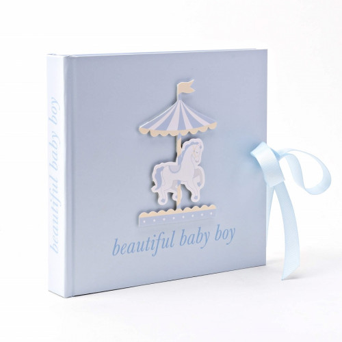 Un album elegant, cu coperta din carton dur, in care se pot stoca 50 de fotografii ale micutului. Pe coperta sunt un carusel cu calut si mesajul "beautiful baby boy". Albumul are dimensiunile de 17.5 x 19 centimetri, iar fotografiile trebuie sa fie in format 10 x 15 centimetri.