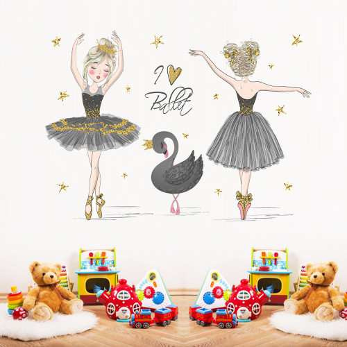 Sticker Autocolant Perete Copii, Balerine si Lebada Neagra, 80x120 cm, Aida HER®