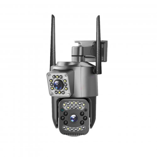 Camera de supraveghere dubla WIFI AleArtizan®, PTZ Bullet, CCTV de securitate IP fara fir, 4MP, exterior/interior, Ultra HD, rotire, leduri lumina, comunicare bidirectionala, alarma, senzor miscare, Argintiu