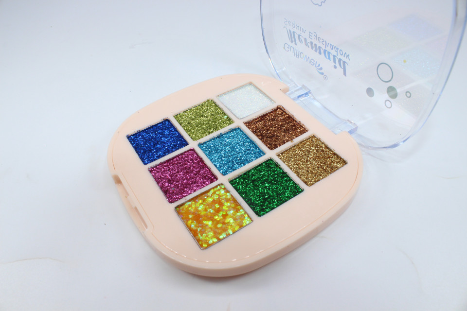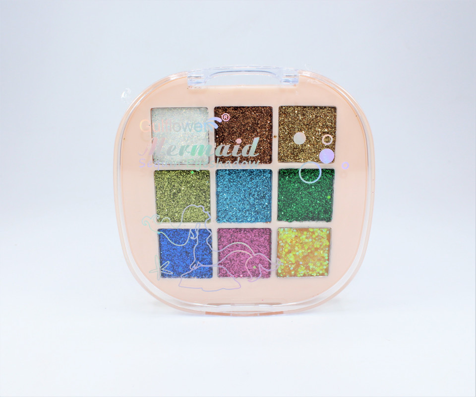 Paleta fard de ochi, Gulflower, Mermaid Glitter, 03 Paleta fard de ochi Glitter, contine 9 farduri cu textura cremoasa, in nuante vii, de carnaval, ce permit realizarea unor machiaje glamour, de mare efect. Particule foarte stralucitoare reflecta lumina in mii de scantei aprinse. Glitter-ul se aplica pe pleoape, direct pe alte farduri, peste baze de machiaj colorate sau pe obraji. Gramaj: 10 g