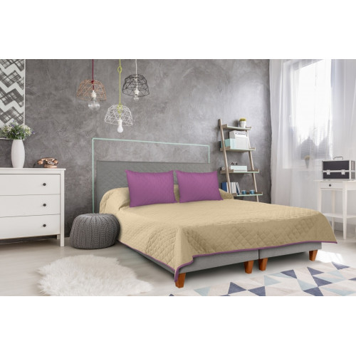 Cuvertura matlasata cu 2 fete Alcam 210 x 220 cm, Purple/Vanila este ideala pentru orice dormitor. In doua nuante total diferite modifica aspectul intregii camere. Cuvertura este captusita cu un strat delicat de fibra siliconica pentru un plus de caldura si confort. Lavabila. Uscare rapida. Compozitie: Tesatura: microfibra 100% Umplutura: fibra siliconica 100 gr/mp