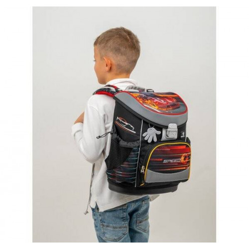 Ghiozdanul ergonomic "Mini-Fit" cantareste doar 800 grame si este fabricat din materiale de buna calitate, rezistente si impermeabile. Compartimentare interioara spatioasa Este prevazut cu o compartimentare bine definita pentru a facilita organizarea diferitelor dimensiuni de rechizite. Sticla de apa (0.7 L) poate fi depozitata intr-unul din buzunarele laterale. Durabilitate Cusaturile intarite si baza ghiozdanului din plastic confera stabilitate si rezistenta la uzura. Murdaria poate fi indepartata usor. Noutate: inchizatoare la nivelul pieptului Acest model este prevazut cu o mini centura la nivelul pieptului pentru a asigura stabilitatea ghiozdanului pe umeri. Daca nu e folosita poate fi inlaturata oricand. Extra Detine 2 manere: unul cu invelis din cauciuc pentru o prindere in mana confortabila. Cel de-al 2-lea maner foloseste la agatarea ghiozdanului. Ergonomie Forma ergonomica si buretele ce "respira" ajuta la distribuirea uniforma a presiunii pe spatele copilului. Bretelele sunt prevazute si ele cu burete pentru un confort optim. Recomandare din partea specialistilor Siguranta Datorita benzilor reflectorizante plasate pe lateralele ghiozdanului dar si a inchizatorii metalice rezistente si reflectorizante copilul e in siguranta pe timp mai intunecat. Fabricat in Serbia Varsta recomandata : 6 -10 ani Dimensiune : 36 x 28 x 19 cm Greutate : 800g