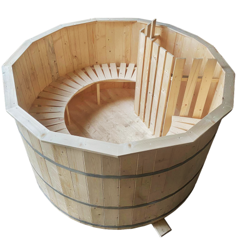 Ciubarul cu apa fierbinte este o solutie excelenta pentru relaxare, pentru confortul familiei si al prietenilor. Ciubarul este fabricat din lemn de molid si are un diametrul de 2.20 metri, fiind potrivit pentru 4-10 persoane . Ciubarul poate fi tratat pe exterior cu lac sau bait. Temperatura apei recomandate pentru baie este de 37-38°C. Temperatura apei peste 39°C nu este suportabila pentru o lunga perioada de timp si poate fi chiar periculoasa. Timpul de incalzire este de aproximativ 4 ore, insa depinde foarte mult de temperatura exterioara, temperatura initiala a apei si de tipul de lemn utilizat (recomandam ca lemnul de foc sa fie uscat, cu continut de rasina scazut). Ciubarul poate fi utilizat in scopuri de relaxare, importiva stresului si ca remediu a bolilor reumatice, daca se adauga si sare. Apa sarata reduce durerea musculara si articulara. Pentru a utiliza ciubarul si cu apa sarata soba submersibila trebuie sa fie fabricata din otel inox marin.
