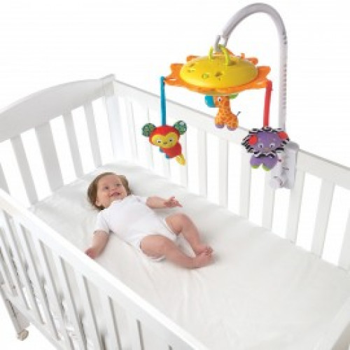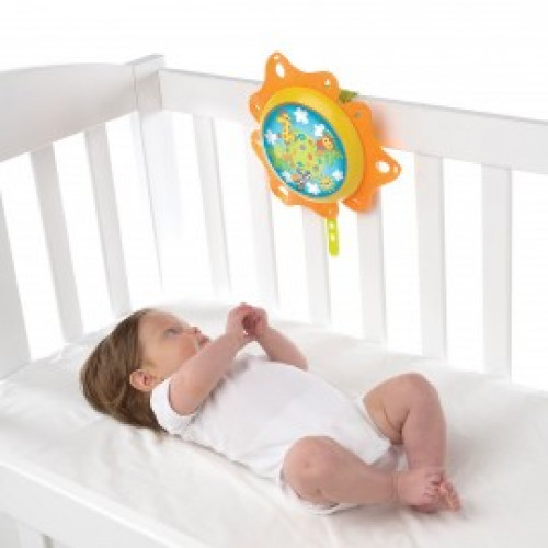 Caruselul muzical cu proiector lumea junglei a fost conceput pentru a crea o ambianta placuta necesara bebelusului dumneavoastra si pentru a-i asigura un somn cat mai linistit. Caruselul este viu colorat, avand jucarii din lumea junglei care sunt concepute pentru a-i atrage atentia bebelusului si a-i dezvolta diferite abilitati si a-l stimula sensorial. Acest carusel poate fi folosit in doua moduri: atasat de patut prin bratul mobil este un minunat carusel muzical(recomandat de la nastere) si atasat de barele laterale ale patutului, devine o linistitoare lampa de veghe (functie recomandata de la 5 luni). Miscarea animalutelor si melodiile placute ale caruselului, vor linisti orice bebelus in cateva minute. Caruselul are 3 animalute din jungla vesele si viu colorate: un ursulet, un leu si o maimutica. Cele 10 cantece de leagan preinregistrate il vor purta pe cel mic in minunata lume a viselor. Pachetul include: Brat mobil prevazut cu clips de fixare 3 jucarii interactive detasabile lampa de veghe Caruselul functioneaza cu 3 baterii AA ( nu sunt incluse) Varsta recomandata: de la nastere