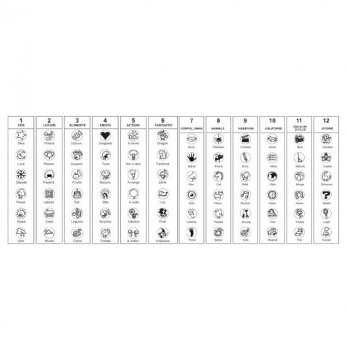 Caracteristici Joc de societate Gigamic Imagidice: Jocul Imagidice stimuleaza imaginatia celor mici si mari deopotriva! Imaginile de pe zaruri iti vor deschde portile unei lumi cu totul infinite cu o multitudine de povesti de creat Este o metoda originala si amuzanta de a incuraja exprimarea verbala si creativitatea Contine 12 zaruri cu imagini Sunt in total 72 de imagini impartite pe categorii: cer, locuri, alimente, emotii, actiuni, fantastic, corpul uman, animale, hobbyuri, calatorii, viata de zi cu zi si istorie Da cu toate zarurile, apoi, impreuna cu ceilalti jucatori, inventeaza o poveste in care sa se regaseasca fiecare dintre imaginile de pe acestea Incepe cu prima imagine ce-ti atrage atentia. Nu exista raspunsuri gresite Scopul este sa lasi desenele de pe zaruri sa-ti starneasca imaginatia In Imagidice nu exista castigatori sau invinsi, iar variantele diferite de joc in care se poate folosi il transforma intr-un adevarat instrument educational, accesibil tuturor. Varsta: 4-99 ani Jucatori: 2-12 Durata: 15-20 minute