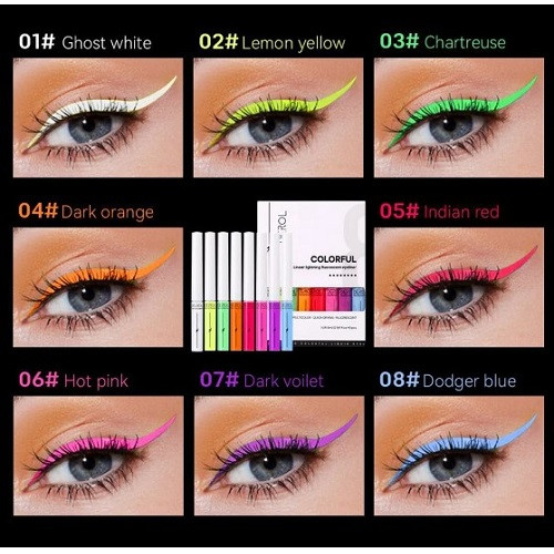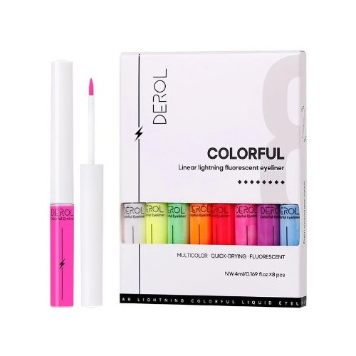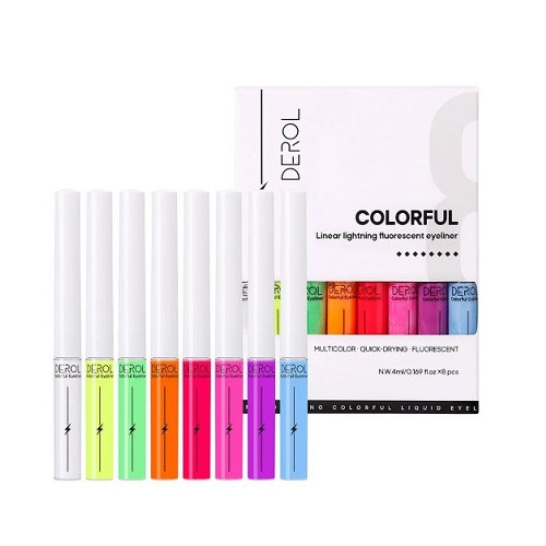 Set Tus Lichid Colorat, Derol, Colorful Fluorescent Eyeliner, 8 Tusuri Ochi
